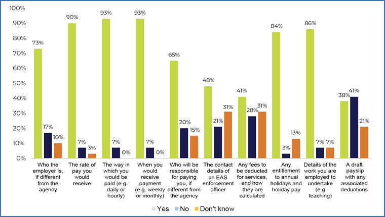 Despite it being a legal requirement since April 2020, just 29% of supply teachers who obtained work through a new supply agency reported that they had been provided with a Key Information Document (KID), detailing how they would be paid, associated deductions, as well as other key details, and well in excess of two fifths (44%) stated that they did not know whether or not they had been provided with a KID by the agency.