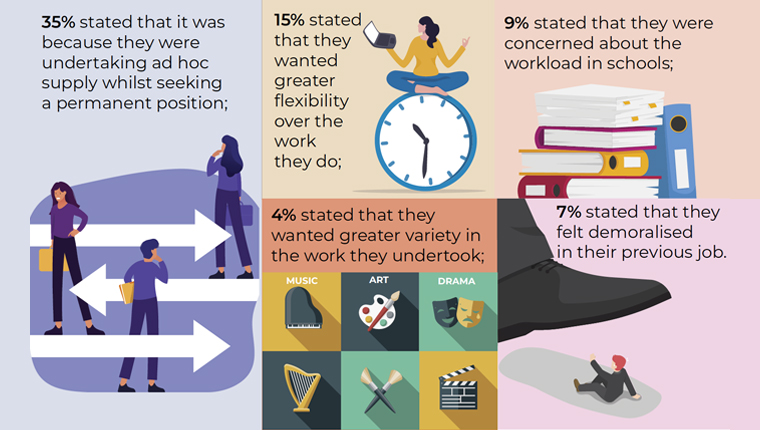 Supply teachers were asked why they carried out supply teaching work. The top five reasons cited by supply teachers were: