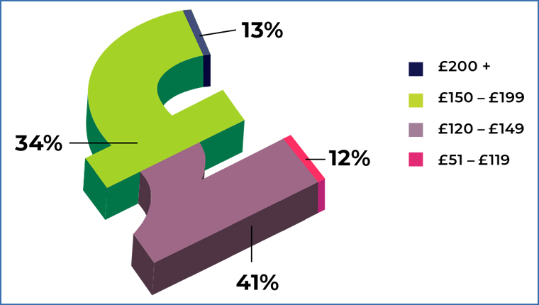 Just over one in ten supply teachers (12%) stated that they were paid between £51 and £119 per day for assignments, just over two fifths (41%) stated that they were paid between £120 and £149 per day for assignments, and just over a third (34%) stated that they were paid between £151 and £199 a day for assignments. Thirteen per cent said that they were paid £200 or more per day for assignments.