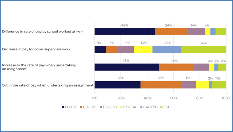 Supply teachers were asked about the rates of pay they were able to secure for assignments undertaken during the academic year 2023/24.