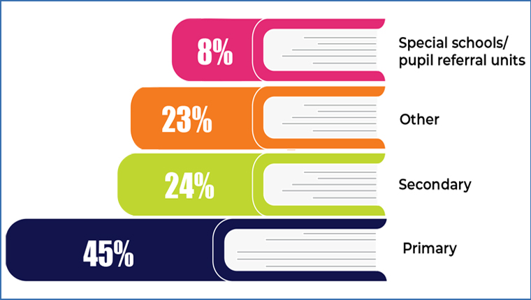 Forty-five per cent who responded to the survey stated that they were able to secure work in primary schools, just under a quarter (24%) stated that they were able to secure work in secondary schools, and just under one in ten (8%) reported that they were able to secure work in a special school/pupil referral unit (PRU). Just under a quarter (23%) of supply teachers stated that their work was in ‘other’ settings (e.g. further education colleges).