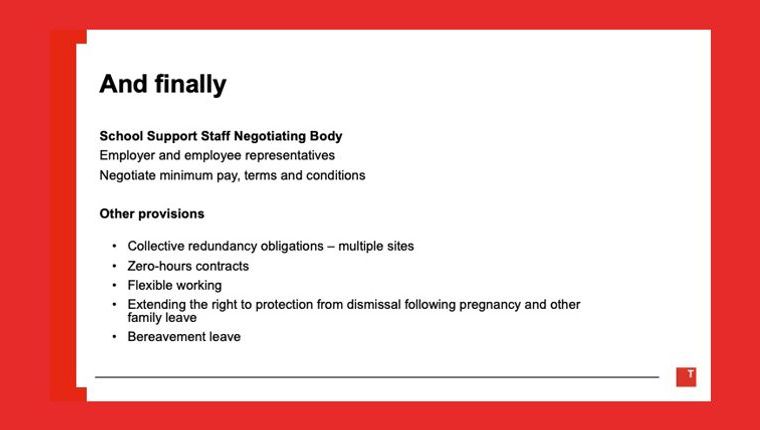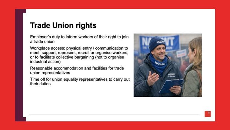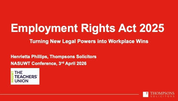 During an Annual Conference Soundbite Session entitled ‘Using the New Employment Rights Act’, NASUWT partner Thompsons Solicitors presented an update on the progress of the Employment Rights Act 2025.